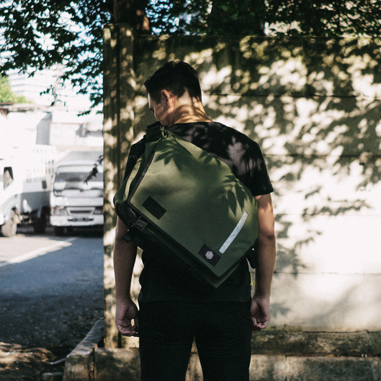'The Echelon' [M] is a 32 liter messenger bag that can expand and compress according to needs. We've always been a big fan of messenger bags for its aesthetic, practicality, and quick access. However, with heavy loads and long rides, it tends to tire one shoulder. The Echelon [M] messenger bag is our way of addressing that issue. we add a retractable secondary shoulder strap, that when needed, can be whipped out to even the load distribution across both shoulders.
