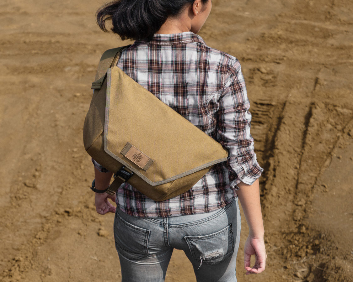 • 900D Polyester outer in desert brown color with DWR (Durable Water Repellent) coating • Signature yellow waterproof PVC tarp liner for improved browsing visibility • Fidlock® magnetic sliding buckles • Woojin® Lock Monster dual-adjust POM (acetal) buckle in desert brown color • Woojin® plastic parts in desert brown color • Industrial-standard nylon webbing • Made in Jakarta, Indonesia, with limited Lifetime warranty