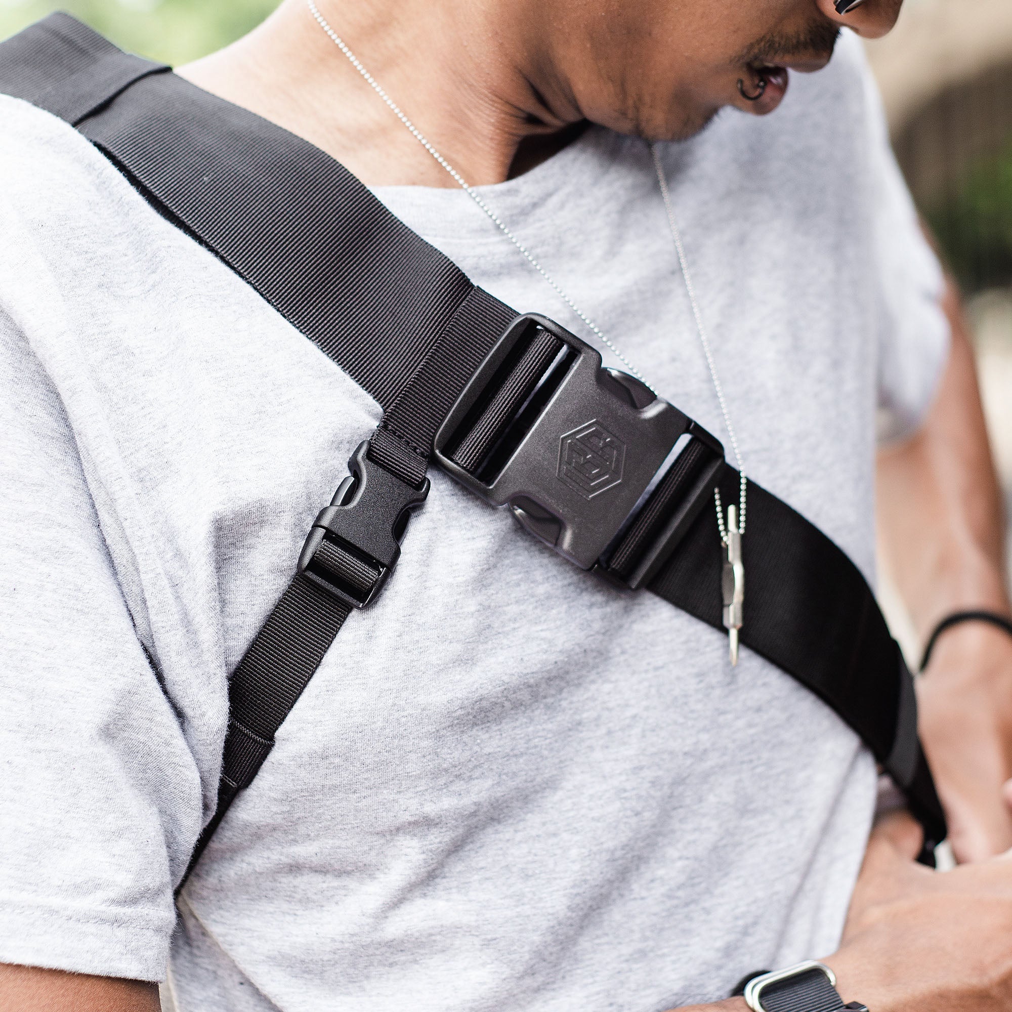 The Slingshot is a compact crossbody, messenger style sling bag, with a padded tablet/laptop sleeve which fits up to 30,5cm x 21,5 cm in dimension, a completely detachable strap that supports cross compatibility with The Echelon’s shoulder strap, a removable anti-sway strap for stability, an external 3,5 inch U-lock holster, and a convenient Fidlock® magnetic flap closure.